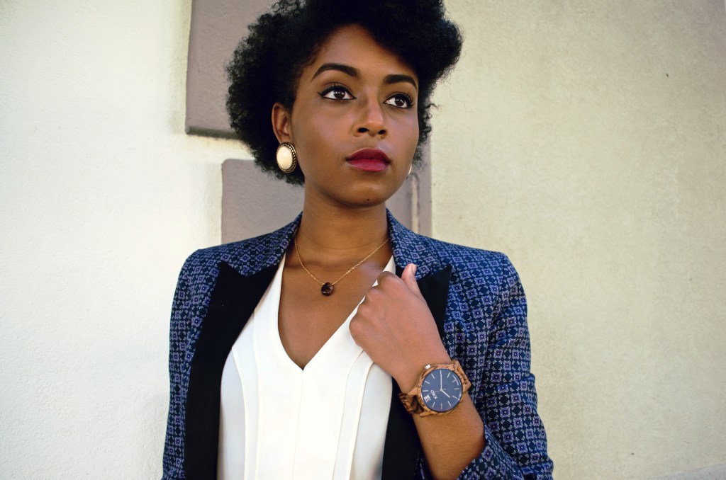 Wearing: Asos blazer; The Limited blouse; New York & Company skirt; DSW heels; JORD Wood Watch; Aldo purse; Aldo earrings