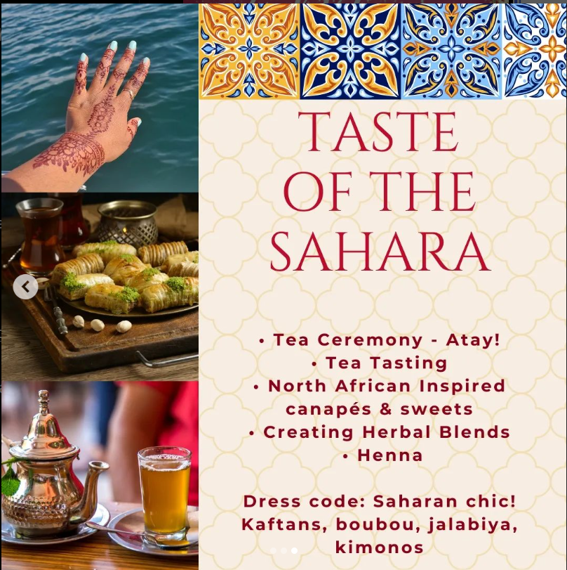My final event was a Moroccan Tea Tasting with Aguma Tea. This was my first time at a tea tasting. We learned about the benefits of different herbs and created our own tea. We also sampled different teas from Morocco. It was a lovely way to spend a Sunday afternoon. I also loved the theme.